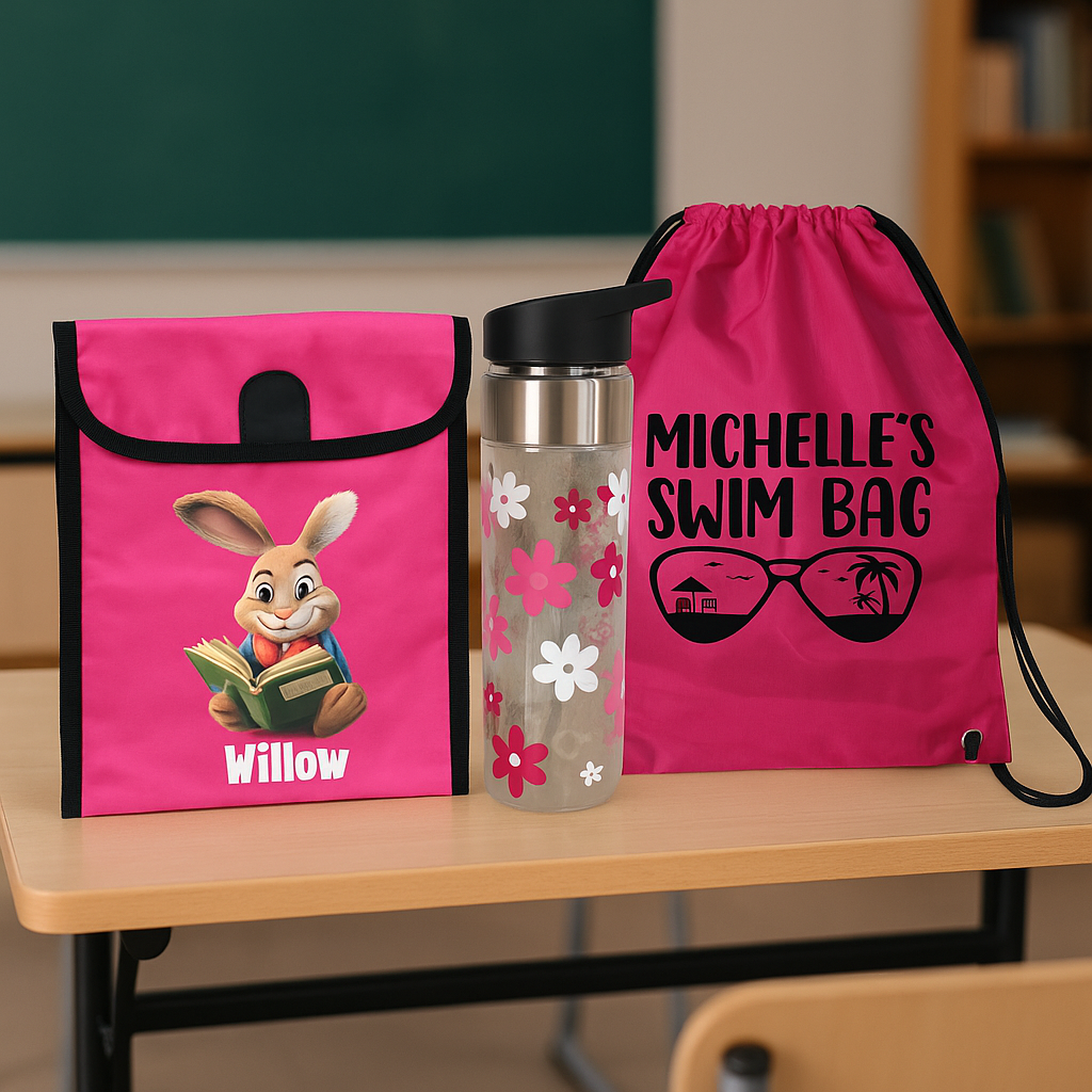 Start the school year organised and confident with this complete personalised pink school bundle. Everything your child needs in one beautiful, coordinated set!