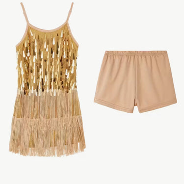 Let your little one shine like a star in this gorgeous gold art deco dress that brings vintage glamour to any special occasion.