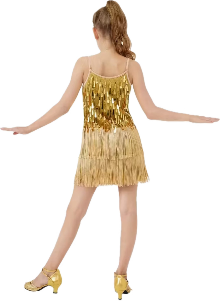 She'll feel like a princess at parties, family celebrations, or any special event in this eye-catching dress. The intricate art deco detailing and rich gold tones create a magical vintage look, while the timeless design ensures she'll feel confident and special.