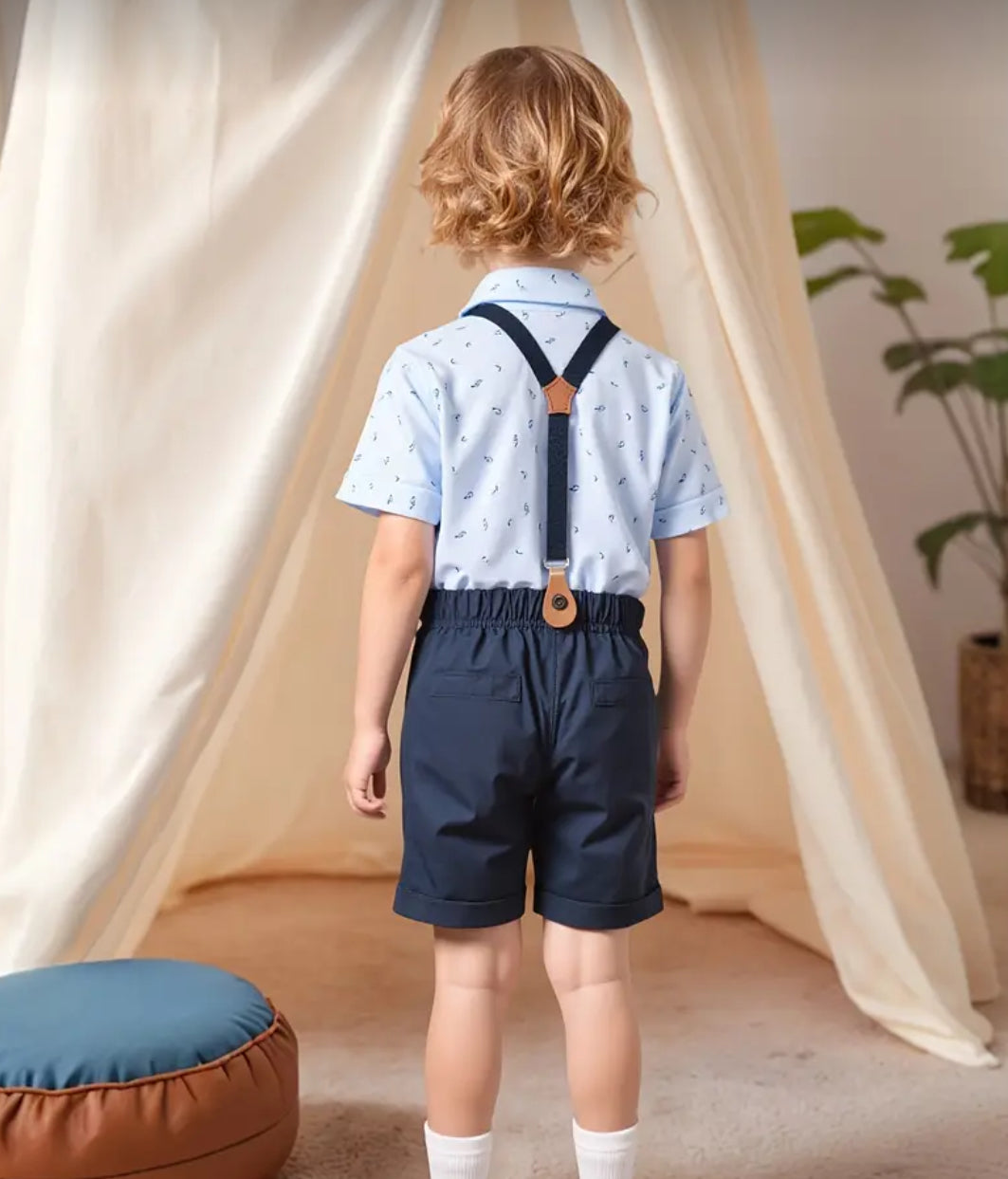 Boys Light Blue 4-Piece Outfit Set - Shirt, Shorts, Bow Tie & Suspenders