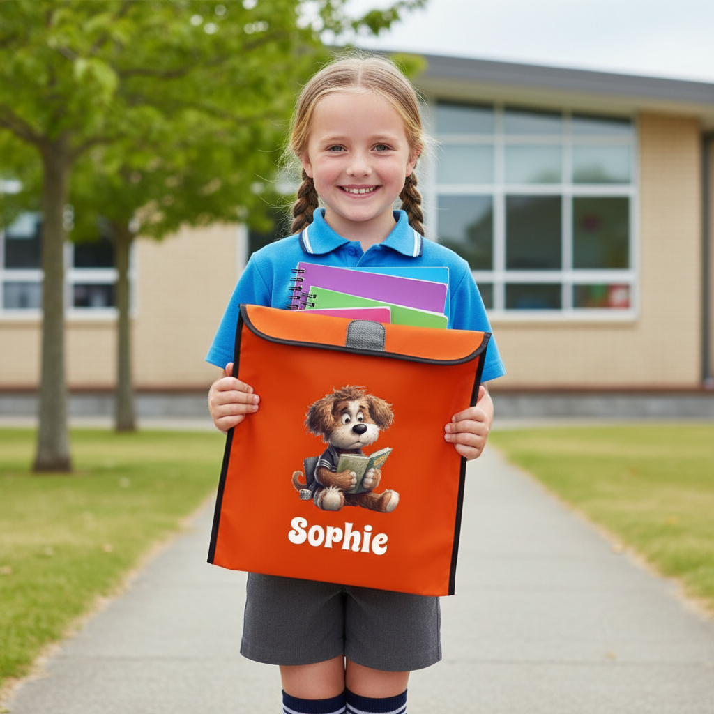 Large Orange Personalised Book Bag - Perfect School Organisation Solution
