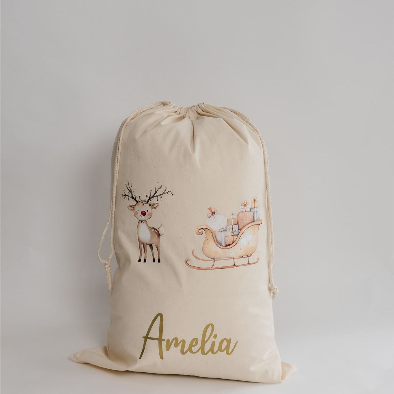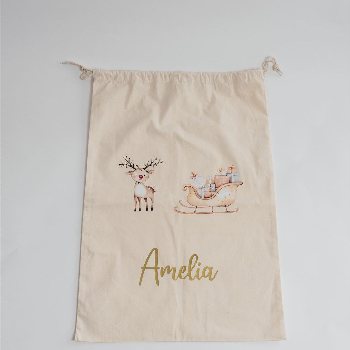 Personalised Whimsical Santa and Sleigh Santa Sack - Custom Christmas Gift Bag NZ